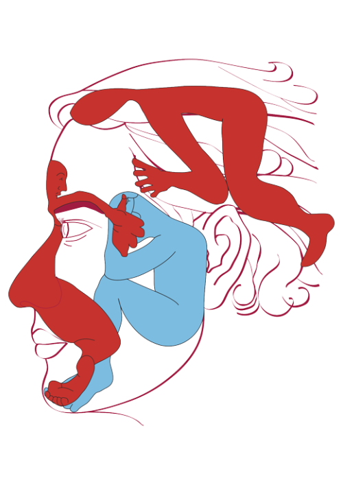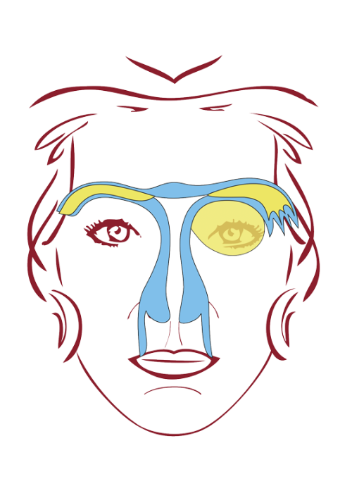 Inspired by Dr. Penfield's cortical homunculus, the Extremities diagram maps the full body vertically on the face in symmetry—feet at eyebrows, limbs along temples, organs near ears and nose